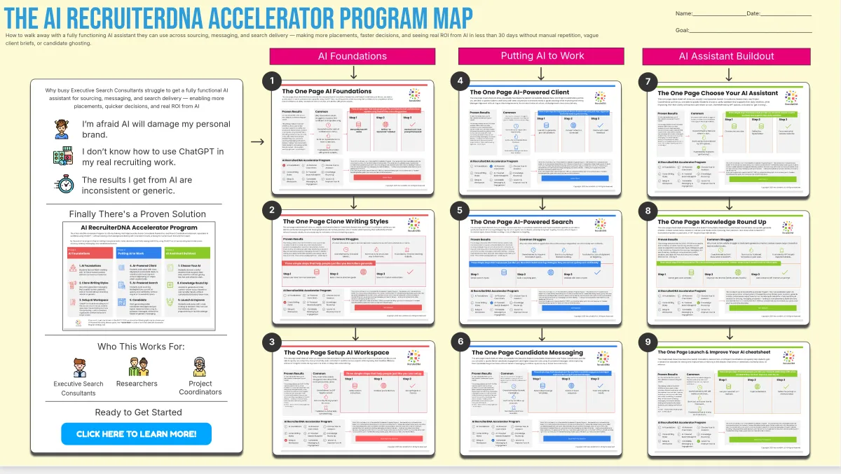 We help Search Firm Founders, Staffing Agency Owners, and Talent Acquisition Leaders master AI-powered recruiting workflows in just 90 days—without getting overwhelmed by new tools—so they can make more placements, faster decisions, and drive higher ROI.